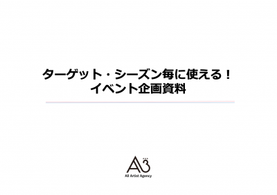 GW、夏休み、〇〇の秋、ハロウィン、クリスマス・・・などなどシーズン毎にイベントのコンテンツの提案が必要な方向けに、タレントや著名人を起用したイベントコンテンツ資料です!